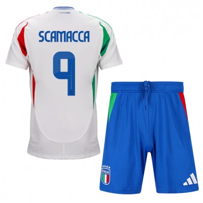 Dres Italija Gianluca Scamacca #9 Gostujuci za djecu EP 2024 Kratak Rukav (+ kratke hlače)