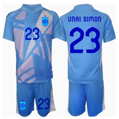 Dres Španjolska Unai Simon #23 Golmanski Domaci za djecu EP 2024 Kratak Rukav (+ kratke hlače)